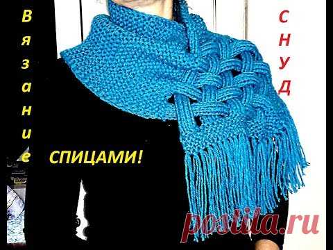 ВЯЗАНИЕ СПИЦАМИ!ПРОСТО И БЫСТРО СВЯЗАТЬ МОДНЫЙ с переплетением СНУД(шарф)