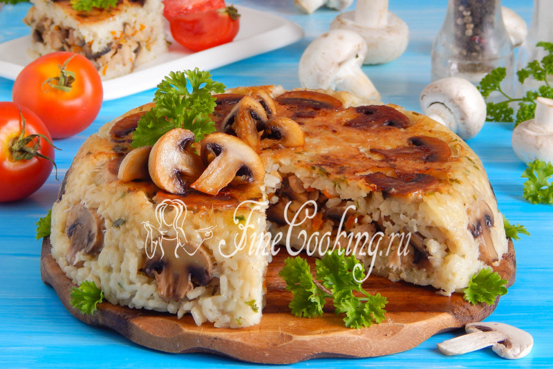 Рисовая запеканка с курицей и грибами в мультиварке