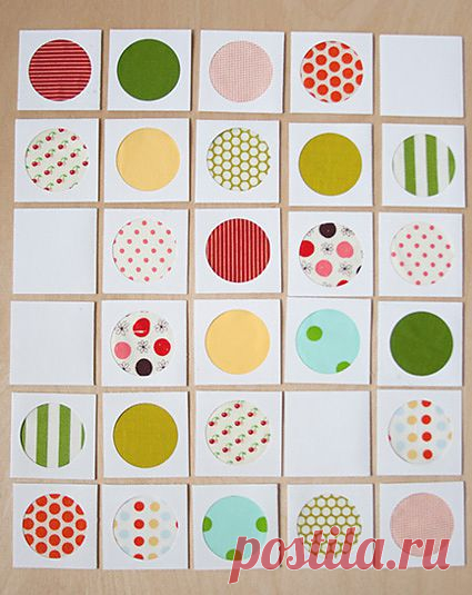 Игра на тренировку памяти. Сделано из бумажных обложек для CD дисков и лоскутов ткани.