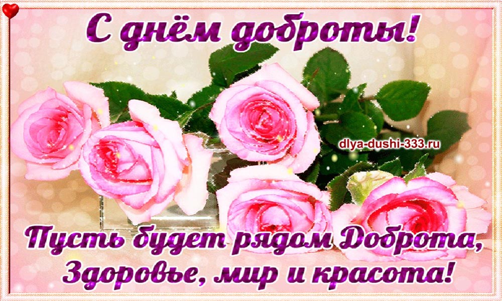 С днем доброты! 💖 💖 💖 http://vse-dlya-dushi.ru/s-dnyom-dobroty/ Нам нужно солнце, воздух и вода… и также нужна доброта! Поздравляю с Днем доброты! Знаешь, в тебе ведь это качество развито необычайно ярко… И я от всей души желаю, чтобы добро возвращалось к тебе, образно говоря, подобному тому, как из одного зернышка вырастает целый колос!