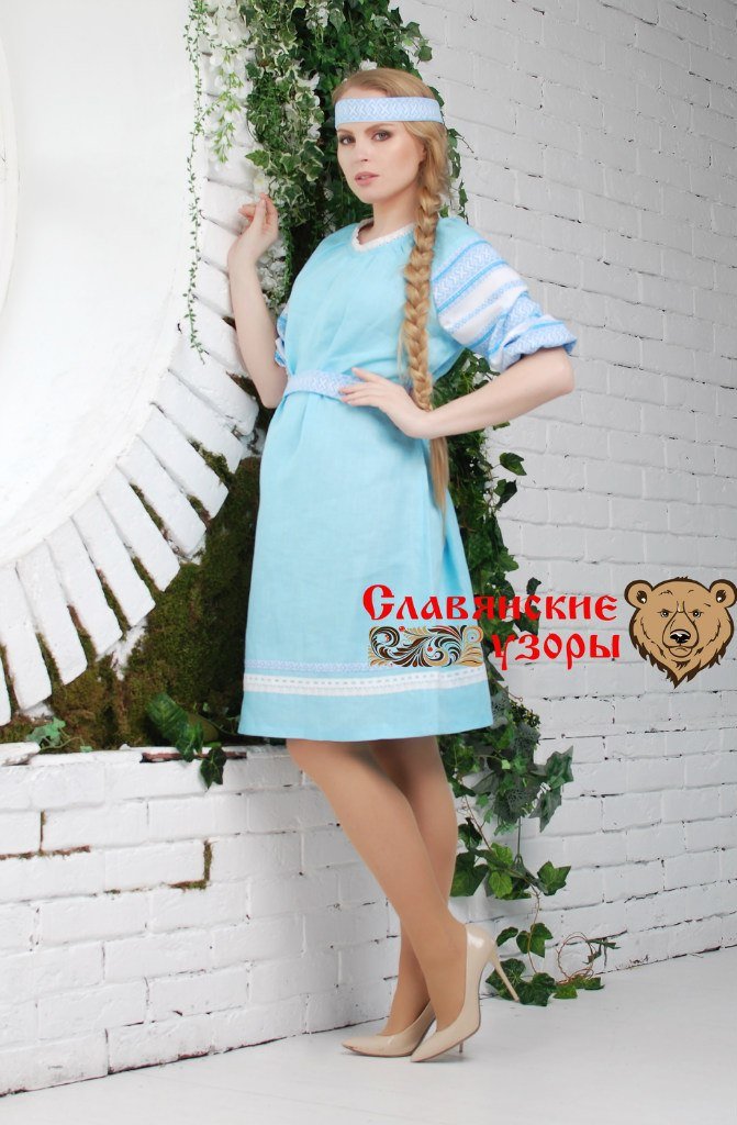 Платье льняное Нежность (миди) - Купить в Интернет-магазине - Eco-Market.life. Славянское традиционное платье и другая одежда из натуральных тканей, хлопок, лён