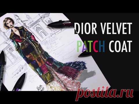 C for Christian Dior. PATCHED VELVET+FEATHER | Fashion Drawing - YouTube