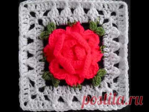 Crochet flower granny square/ Роза в квадрате крючком