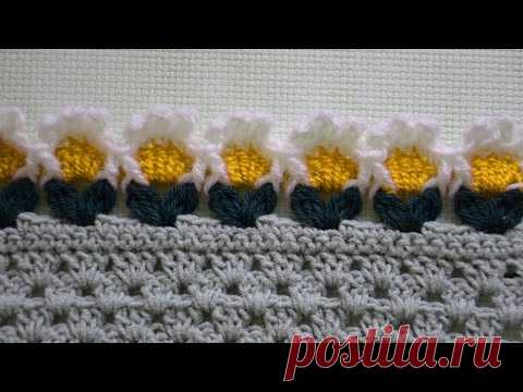 Цветочная кайма "Хоровод" крючком. Crocheted flower edging