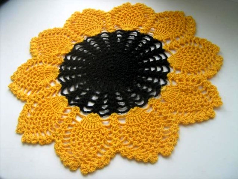 Салфетка подсолнух крючком схема и описание, видео: 4 модели