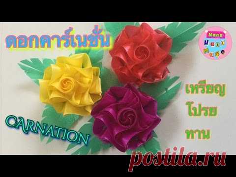 วิธีพับเหรียญโปรยทานแบบง่ายๆ ดอกคาร์เนชั่น | How to fold a ribbon (carnation)| Nana handmade - YouTube