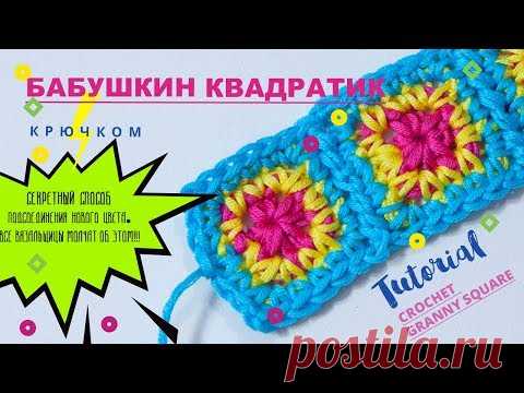 Секретный способ подсоединения нового цвета. Все вязальщицы молчат об этом! Бабушкин квадрат крючком
