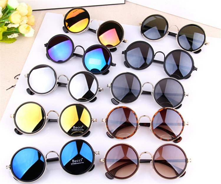 Круглые очки от солнца с двойной метало-пластиковой оправой (в наличии коричнево-леопардовые, черные, зеркальные: синие, красно-желтые, желто-голубые) - Солнцезащитные очки и аксессуары / СЮРПРАЙЗ