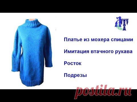Платье спицами из итальянского мохера. ИМИТАЦИЯ ВТАЧНОГО РУКАВА. РОСТОК. ПОДРЕЗЫ