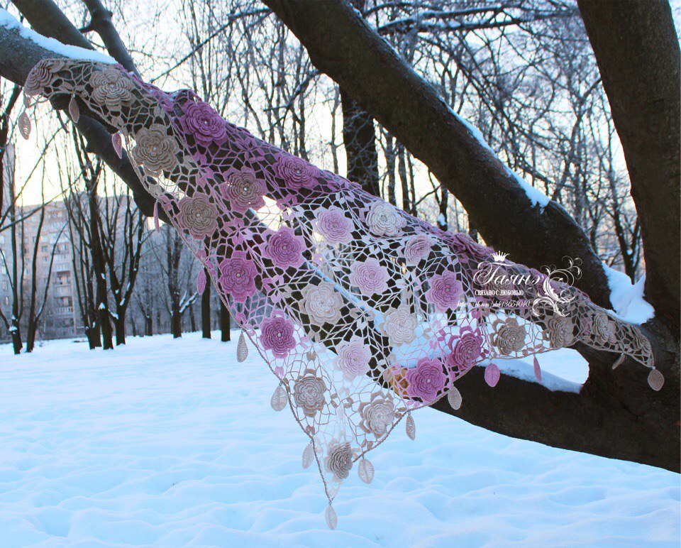 Шаль "Пепел розы" Пряжа кауни пинк-беж 8/1,примерный расход около 300гр(2 пасмочки) Размах 185х80см Крючок китайский №2 Декорирована металлической фурнитурой и листьями,обвязана по всему периметру рачьим шагом Авторская работа Дизайнер Манукян Гаянэ
