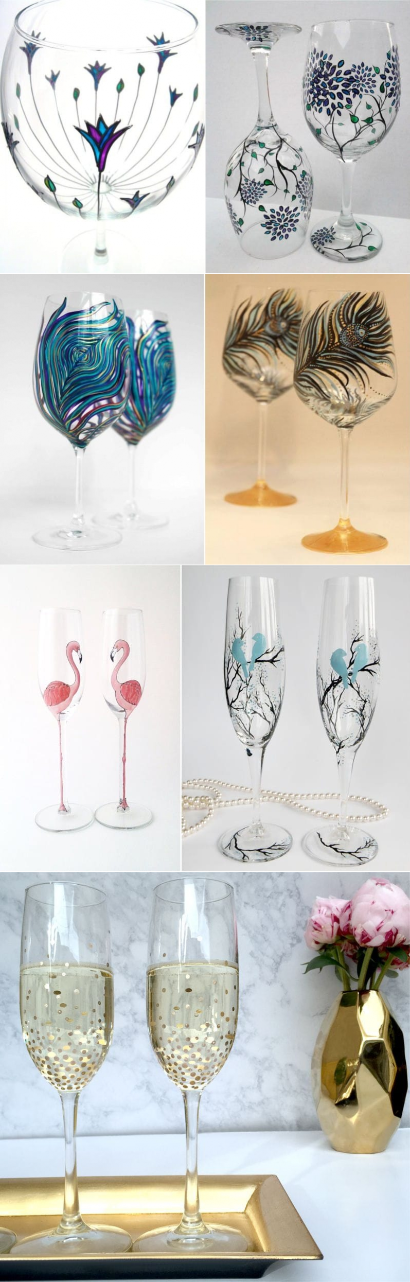 Мастерице понадобились лишь лак для ногтей и ватные палочки, чтобы превратить обычные бокалы в нечто потрясающее!