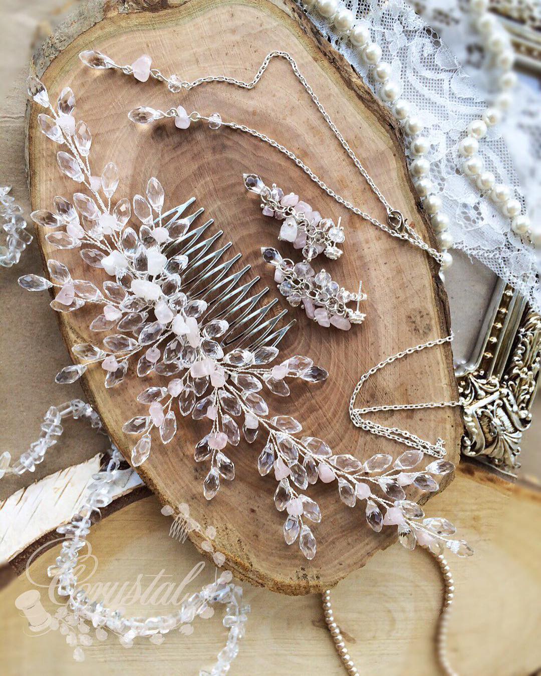 #украшениевприческу #украшенияручнойработы #украшениядляволос #украшениеневесты #украшениедляневесты #розовыйкварц #crystal #weddi...