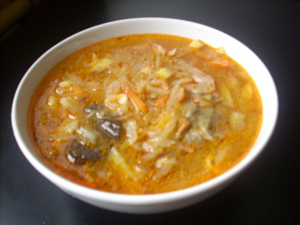 Щи валаамские (постные ) На 1 л воды: грибы сушеные - 40 г, свежие - 350-400 г, капуста - 400 г, лук репчатый - 40 г, корень петрушки - 20 г, мука - 20 г, перец черный - 6 горошин, два лавровых листа, зелень петрушки и укропа…