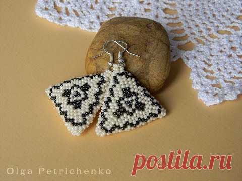 Делаем серьги - объемный треугольник из бисера. Making earrings surround triangle of beads.