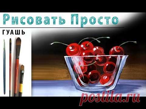Как нарисовать натюрморт ВИШНИ В СТЕКЛЕ! Реализм для начинающих, гуашь! Урок рисования. Видеоурок..