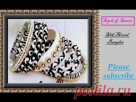 How to make silk thread bangles with gold drop chain || zig zag silk thread bangles