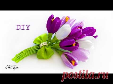 КРОКУСЫ ИЗ ЛЕНТЫ, МК / DIY RIBBON CROCUSES