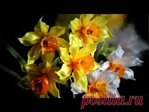 Цветок НАРЦИССА из лент, КАНЗАШИ, мастер класс / Ribbon Flower Kanzashi