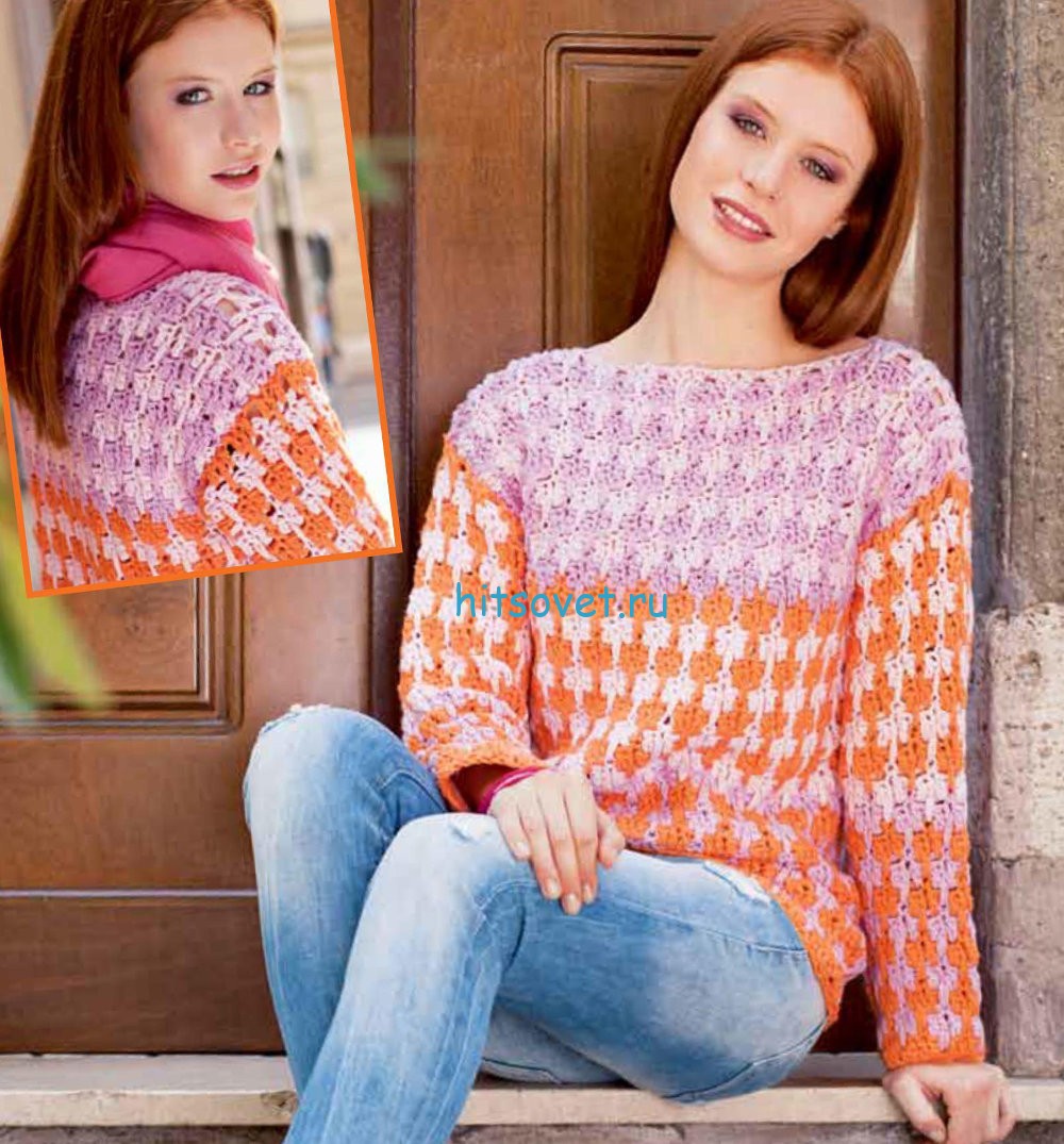 Вязание пуловера толстым крючком - Хитсовет Вязание пуловера толстым крючком. Классическая натуральная шерсть, но фантастического качества, воздушно-лёгкая и необычайно мягкая, вяжется здесь в два сложения толстым крючком. Это обеспечивает не только особенную пластичность вязаного полотна, но и быстрый результат.