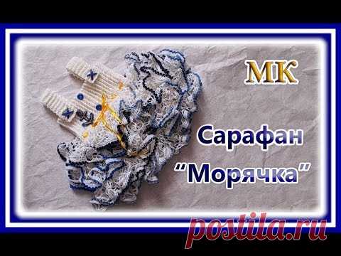 Вязаный сарафан крючком Морячка / Как вязать безотрывно детский сарафан/ Мк.