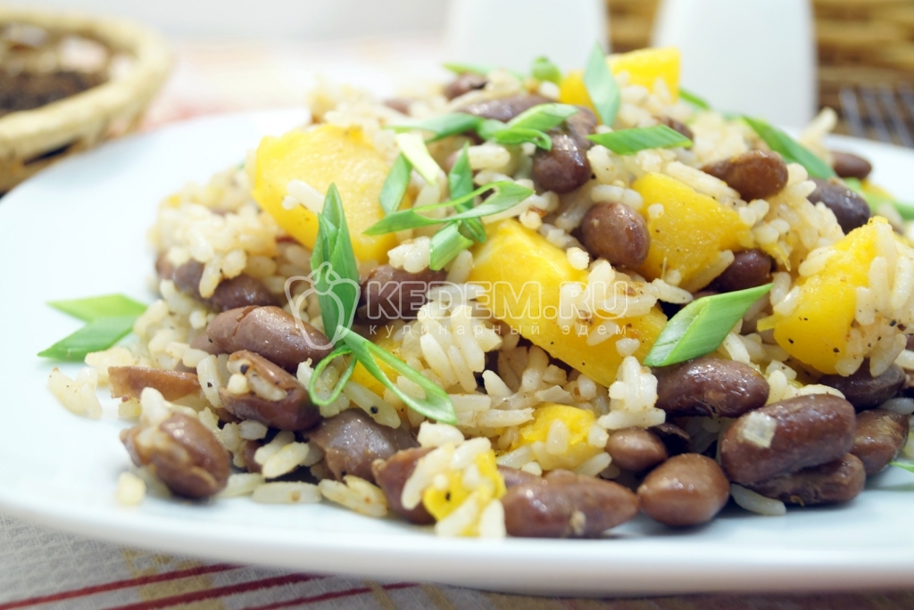 Постный плов с тыквой и фасолью