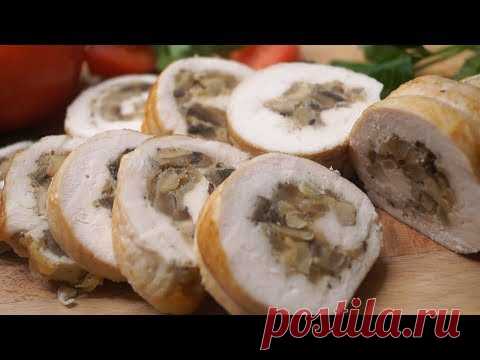 Куриный рулет с грибами и сыром. Это отличная закуска, а также довольно сытное основное блюдо. Хорошо смотрится порезанным на кусочки на праздничном столе. У...