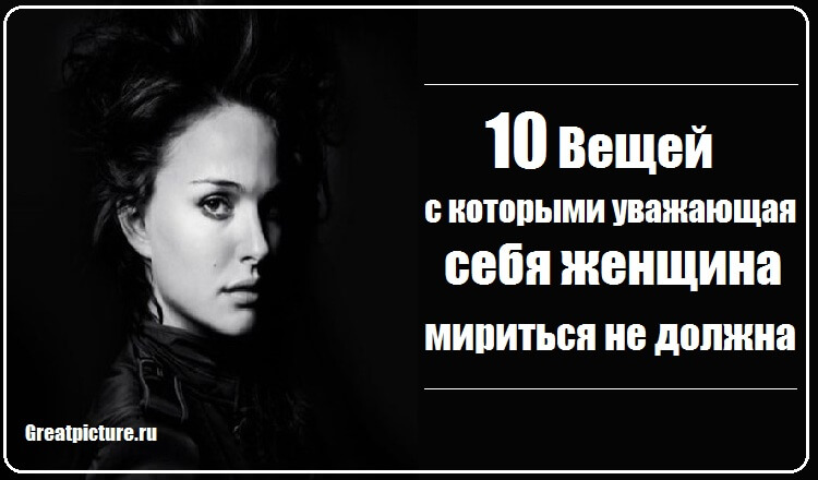 10 Вещей, с которыми уважающая себя женщина мириться не должна Представьте, как ведут себя воспитанные люди, которые относятся друг к другу с уважением и приязнью: какие у них лица, глаза, интонации, как они одеты