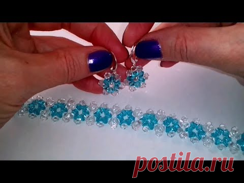 Комплект украшений"Незабудки". МК. Tutorial: jewelry set. DIY