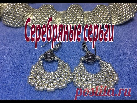Серебряные серьги из бисера трёх размеров.