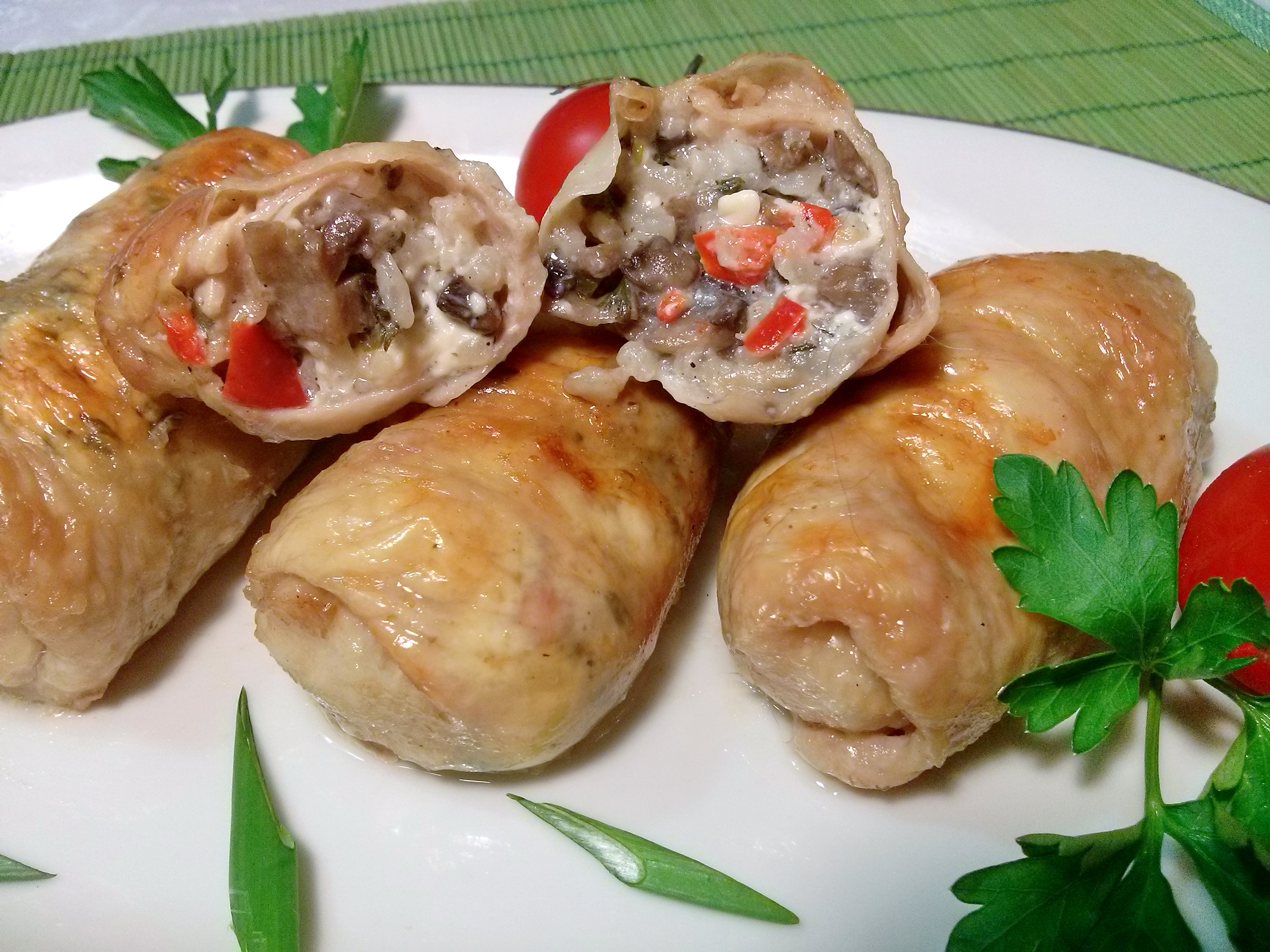 Куриные шкурки с начинкой, рецепт с рисом и грибами