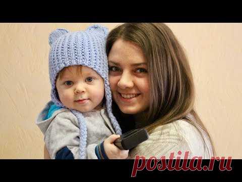 ВЯЗАНАЯ ШАПКА СПИЦАМИ. ПРОСТАЯ ДЕТСКАЯ ШАПКА МИШКА. УШКИ НА МАКУШКЕ