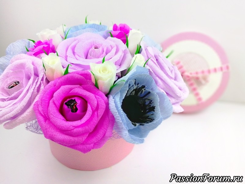 Нежный букетик роз и анемонов из гофрированной бумаги с конфетами. - запись пользователя akademiya_idey (Анна) в сообществе Работа с бумагой в категории Другие поделки из бумаги и картона Как сделать цветы из гофробумаги? Очень часто слышу такой вопрос. Но чуть усложним сегодняшний мастер класс и сделаем цветы из гофробумаги с конфетами.