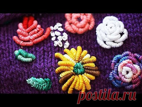 Вышивка на вязаных изделиях. Вышивка по трикотажу. Вышивка цветов. (embroidery on knitting)