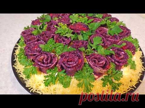 Салат "Букет из роз". С мясом курицы, грибами, морковью по-корейски .