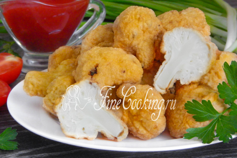 - Подаем наше простое и вкусное блюдо сразу же в горячем виде с любым соусом на ваш выбор. При правильном приготовлении кляр порадует вас хрустом и воздушностью, а цветная капуста - нежностью и сочностью. Готовьте на здоровье!