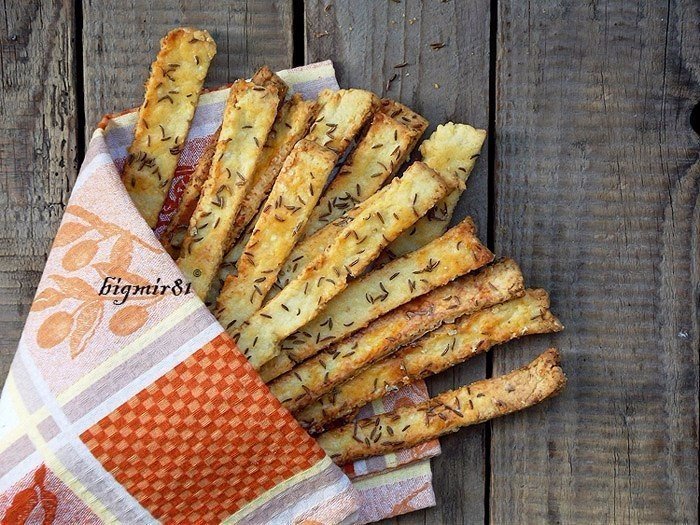 Картофельные палочки. Вкусные, хрустящие, солененькие... любители похрустеть от таких не смогут отказаться! Ингредиенты: 250 г пшеничной муки 250 г сваренного в мундире картофеля 250 г масла сливочного (количество масла можно немного уменьшить на грамм 50-75) соль и тмин для посыпания Приготовление: 1. Картофель натереть на мелкой терке. Добавить к картофелю масло и муку. Замесить тесто. 2. Раскатать тесто в пласт толщиной приблизительно 0,5-0,7 см. Посыпать солью и...