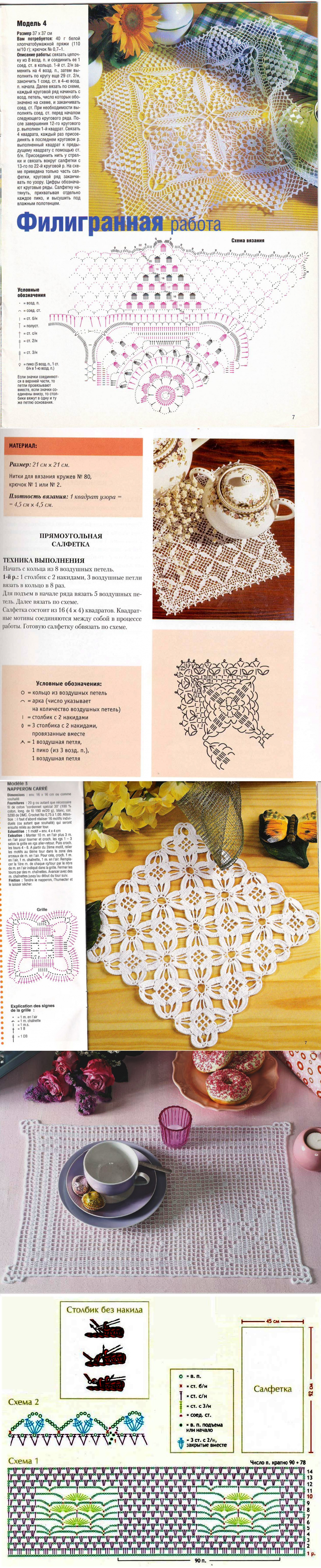 прямоугольные салфетки крючком со схемами