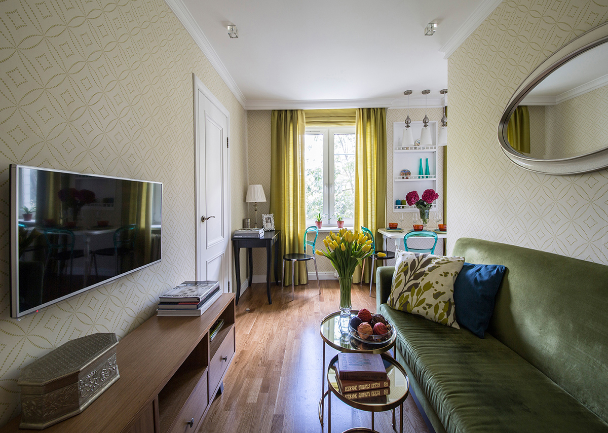 Как разместить на 41 квадратном метре спальню, детскую для двоих детей и гостиную? Чем грамотно отвлечь внимание от скромных размеров квартиры? Разбираемся на примере нового проекта дизайнера Лидии Большаковой