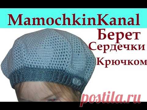 Летний Весенний берет Филейное вязание крючком для начинающих Сердечки