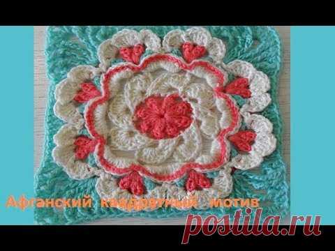 Афганский квадратный мотив крючок, Crochet motif square (узор № 148)