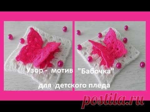 "Бабочка в квадрате" узор -мотив для детского пледа,Crochet Butterfly Motif (узор № 128)