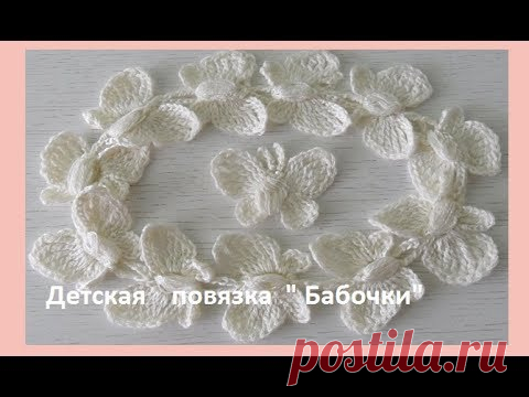 Детская повязка " Бабочки " ,Crochet headband baby (бэби # 50)