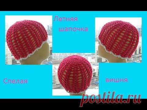 Летняя шапочка "Спелая вишня",крючок, ( How to Crochet hat? ) (baby#22)