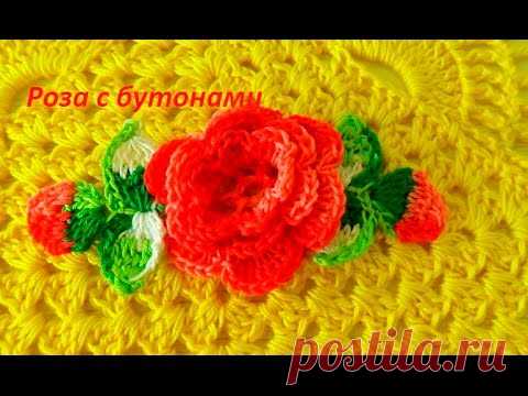 Вязаные цветы" Роза с бутонами",крючок . Crocheted flowers (узор#93)