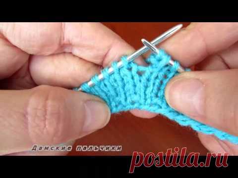 Прибавление петли провязыванием за переднюю и заднюю стенки