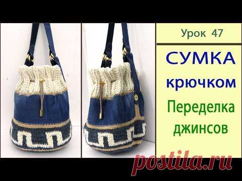 Что можно сделать из старых джинсов? Вязаная сумка крючком и фрагменты из старых джинсов: мастер класс, как связать такую же необычную сумку. Урок легкий, ин...