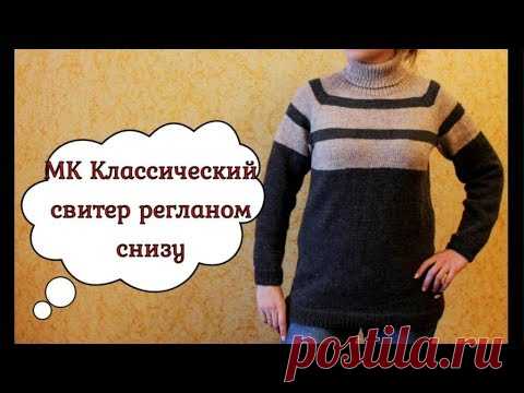 МК Классический свитер РЕГЛАНОМ СНИЗУ // С вывязыванием РЕГЛАНА, РОСТКА и ПОДРЕЗОВ - YouTube