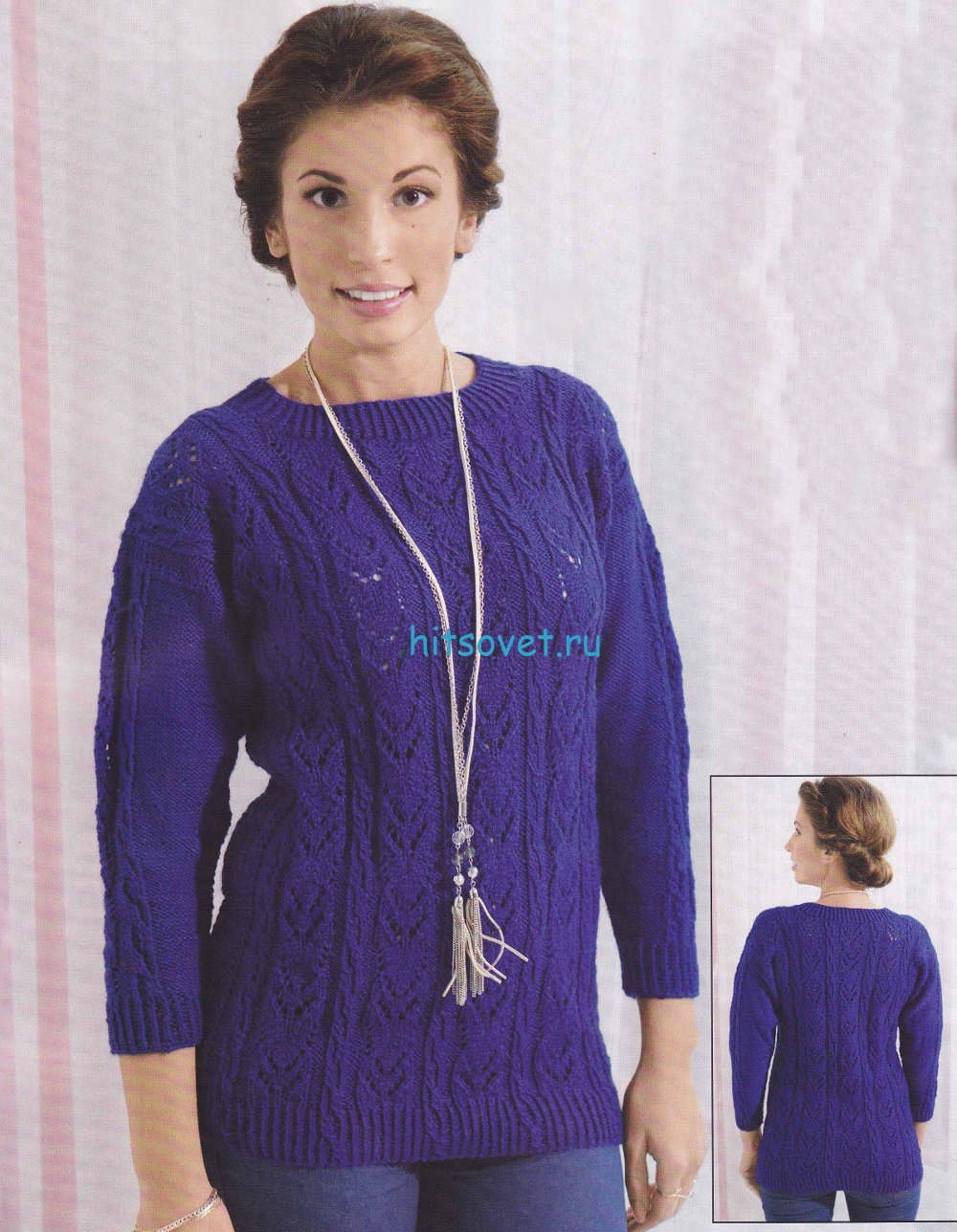 Вязание свитера ажурным узором со схемой - Хитсовет Вязание свитера ажурным узором со схемой. Модный свитер для женщин со схемой и бесплатным описанием. Вам потребуется: 550 г пряжи Adelia «LUCAS» (70 % шерсти, 30 % акрила; 218 м/100 г) василькового цвета; круговые спицы № 2.