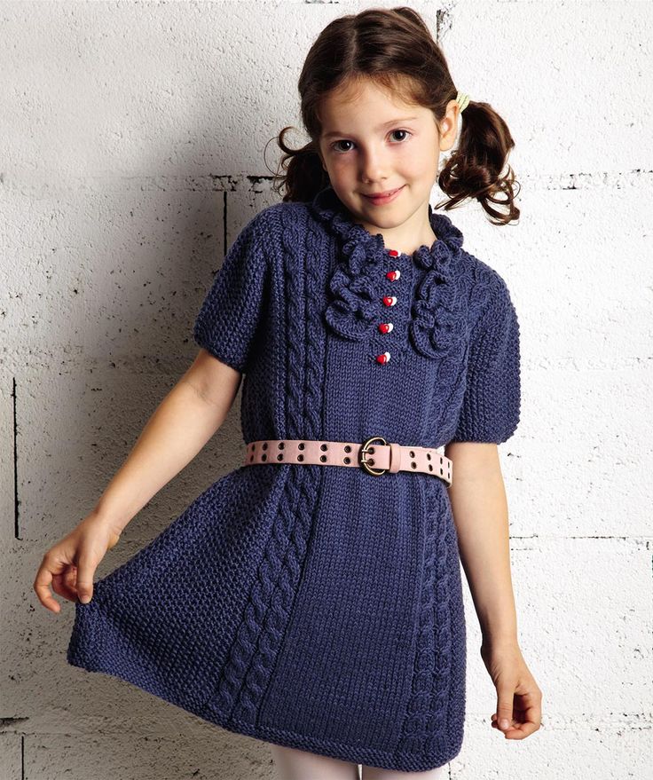 Синее платье спицами для девочки - Портал рукоделия и моды