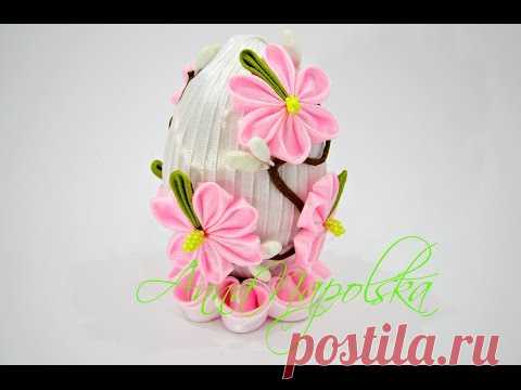Писанка "Сакура" канзаши. Пасхальное яйцо "Сакура" своими руками. Easter egg kanzashi